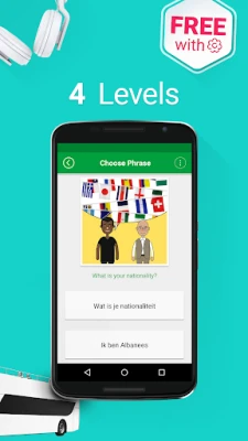 Fun Easy Learn has developed many applications to help people around the world learn foreign languages for free. Fun Easy Learn applications improve your Dutch skills: speaking, listening and grammar. The dictionary of the apps has human voice pronunciation for each common phrase to improve your speaking skill.