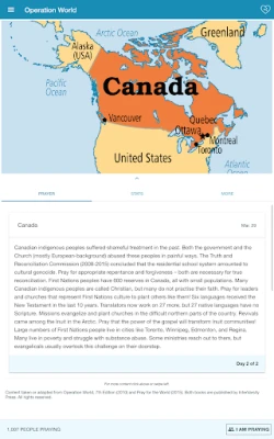 Want to join the global prayer movement? Operation World (OW), the definitive global prayer handbook, has been used by millions of Christians to pray for the nations. Now, with the mobile app, you can receive reminders to pray for the “country of the day,” discover information about every nation and engage with the praise reports and more in-depth prayer requests given for each country of the world.