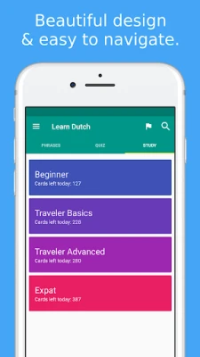 All Dutch phrases and words are presented to you in both phonetic and original Dutch writing. They are recorded by a native speaker from Netherlands.