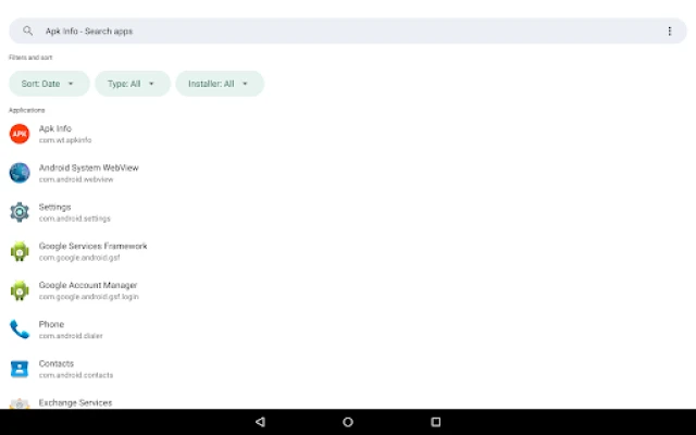 - package name - version name and code - installer package - minimal and target sdk - apk signature - installation and last update time - metadata from AndroidManifest - permissions - list of activities - native libraries and more informaction from AndroidManifest file.
