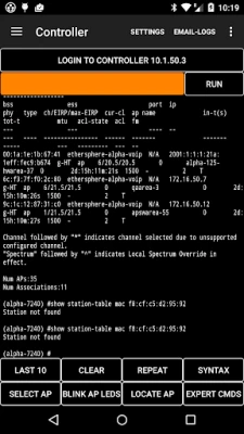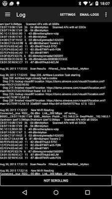 • A Bluetooth Low Energy (BLE) scan reports nearby iBeacons, Aruba beacons and other BLE devices with UUID, index values and signal strength measurements. Also the BluConsole function.
