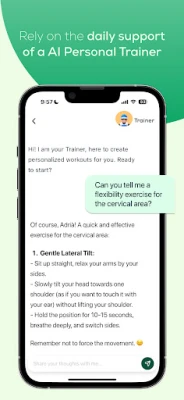 - Personalized well-being with AI: Our intelligent assistant guides you with recommendations and exercises tailored to your needs, based on your habits and records.