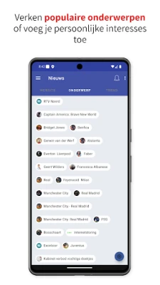 Stel gepersonaliseerde meldingen in door te kiezen voor onderwerpen zoals Politiek, Economie, Sport, Technologie, Entertainment, en anderen.