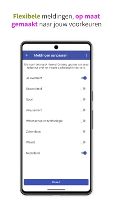 Pas uw meldingen aan op basis van uw interesses. Kies uit categorieën zoals Breaking News, Nationaal Nieuws, Wereldnieuws, Politiek, Economie, Sport, Technologie, Lifestyle, en Entertainment. Ontvang alleen meldingen over het nieuws dat u wilt volgen.