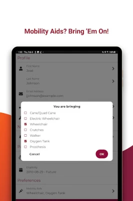 Check your eligibility status, book space for escorts or companions, service animals and more on the go.