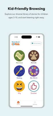 Whole World Kids is a fun and easy-to-use audiobook app designed for children ages 3-10. It features a diverse collection of stories from around the world that will captivate your child's imagination and spark their curiosity as they listen to traditional children's stories from around the world while improving language development and early literacy skills. With Whole World Kids, children can explore different story categories and highlight their favorites so they can easily come back to them. The app offers 30 free stories to start, with new stories added every month for premium members. Enjoy easy navigation and safe content designed just for kids. Boost your child's love of storytelling and curiousity with Whole World Kids today!